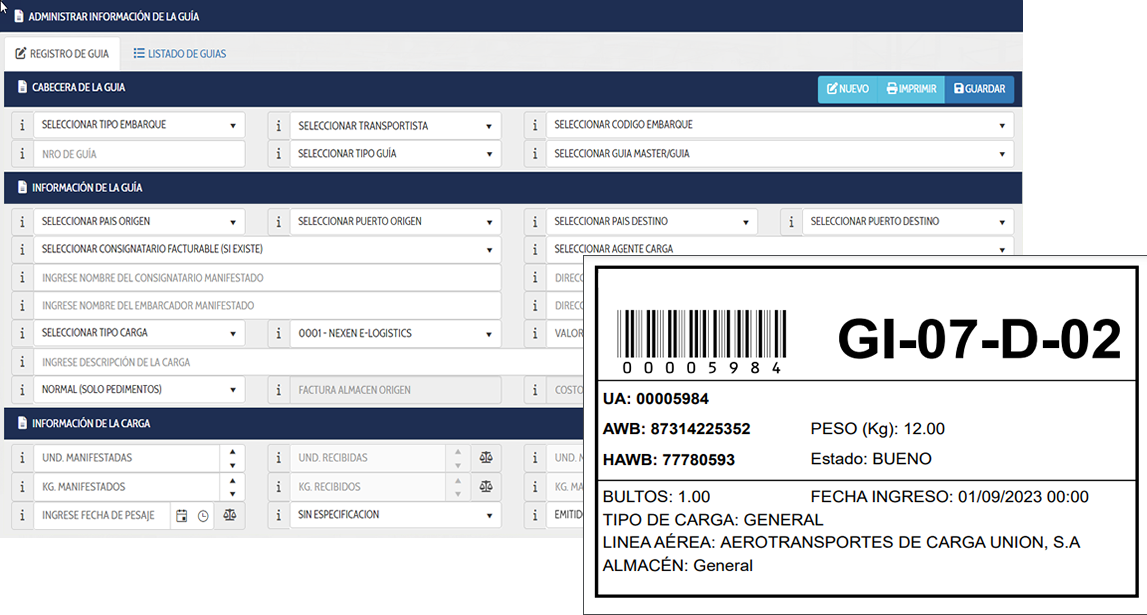 - Gestión Integral de guías (AWB y HAWB).